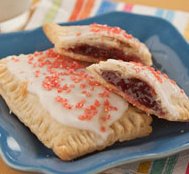 Unroll one pie crust and using a knife, square the edges. Cut into 12 rectangles 2 inches wide by 3 inches long. Place a teaspoon of preserves in center of 6 rectangles and top with remaining rectangles. Using a fork, crimp edges and place on baking sheet. Unroll second pie crust and repeat process.