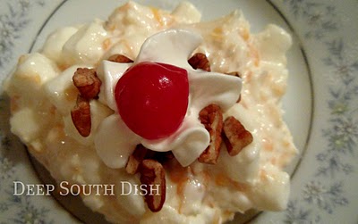 This was a holiday staple in my south Texas home. I do not care for coconut so my mother would take out a serving for me prior to adding the coconut. Thirty-two years later I still make it, adding a cup of chopped pecans in place of the coconut. It's lovingly called "Jack's Ovary Salad", due to a miscommunitcation when he, my son, was a youngster (he's now 28)...something about marshmallows and ovaries! It'll be on our Thanksgiving table this Thursday!