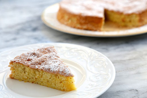 Gently scoop the batter into a the prepared springform pan and place in the oven. Bake for 35 minutes. Remove from the oven and let cool. Run a sharp knife around the edge of the cake helping it to separate from the side of the pan. Release the springform pan sides, and gently move the cake (on parchment) to a cake serving plate. Sprinkle with a little powdered sugar before serving.