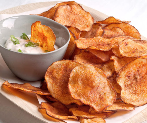 If you don’t already have a mandoline slicer, it is worth getting one just to be able to make these chips. Their deep potato flavor is a revelation and they make for a crunchy indulgence you can feel good about. The smoked paprika gives them a depth of flavor that elevates them to another level, but they are also delicious simply salted.