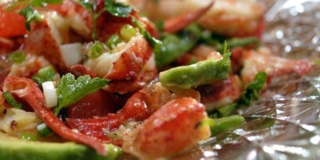 4. Chop the lobster meat into large chunks for the salad and add it to the grapefruit. Cut the avocado and add it, along with a generous squeeze of lemon to keep its colour. Chop the green onions, including the green, and add along with the parsley leaves. Add the oil, salt, and pepper.