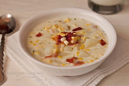 Add the 3 cups water and corncobs to the pressure cooking pot. Lock lid in place, select High Pressure and 10 minutes cook time and start. When timer beeps, turn off pressure cooker, and do a quick pressure release. Carefully remove corncobs and discard them. Leave the corncob broth in the pressure cooking pot.
