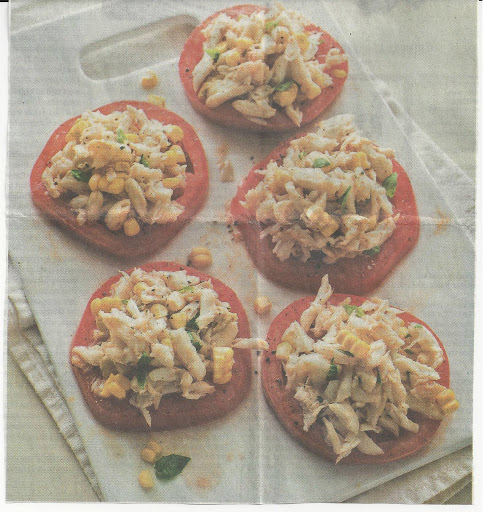 3. In a small bowl, combine kernels, crab, basil, lemon juice, Tabasco and salt and pepper to taste, and toss lightly. Top each tomato steak with 1/4 of the relish and serve.