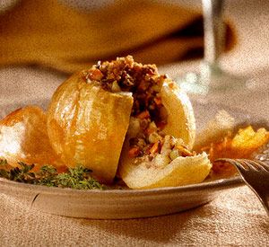 In a bowl, mix together all the remaining ingredients with hands Fill both matching sides of the onion then press them together, wrap them twice in foil and set aside.