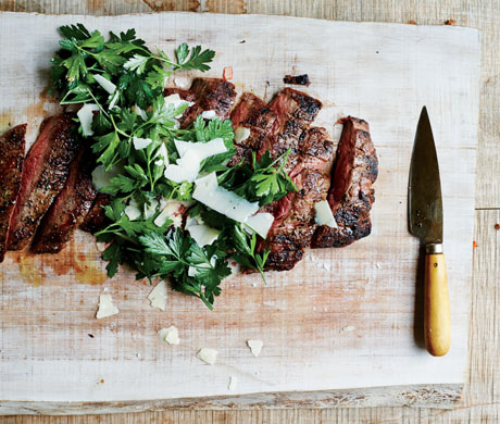 Top Grilled Steak with Parsley-Parmesan Salad