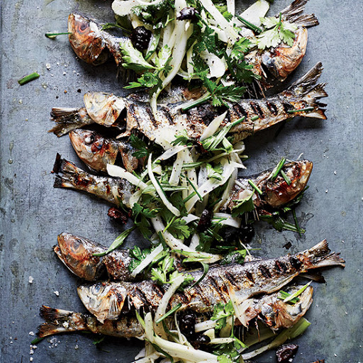 Grilled Sardines with Herbed Fennel-and-Olive Salad