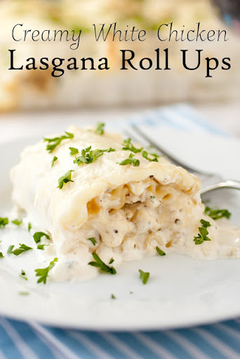 Spread 1/3 cup of the chicken mixture into an even layer along the length of each cooked lasagna noodle then roll noodles to opposite end. Spread 1/4 cup of the remaining cream cheese mixture along the bottom of a 9 x 9-inch dish or along 2/3 of a 13 x 9-inch dish (I tried fitting it into an 8 x 8 and it just wasn't going to happen so a 9 x 9 should work. I don't own a 9 x 9 so I had to compromise and use a 13 x 9 and just use 2/3 of the dish). Align pasta snugly and side by side in baking dish - 3 rows of 3. Cover each lasagna roll evenly with remaining cream cheese mixture, being sure to cover tops of pasta entirely so they don't dry while baking. Sprinkle tops evenly with remaining 1 cup Mozzarella cheese. Bake in preheated oven 25 - 30 minutes until heated through and cheese has melted. Sprinkle top evenly with remaining 1 Tbsp chopped fresh parsley. Serve warm.