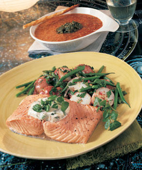 3. Place 1 salmon fillet on each of 6 plates. Serve with watercress mayonnaise.