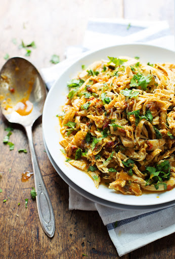 Meanwhile, keep the sauce left in the pan over low heat. Whisk in the mustard and cook the sauce until it reduces by about half and you get all that mmm mmm good flavor in a thicker, more concentrated sauce. Add the shredded chicken back to the pot with the sauce and toss to combine. Top with additional fresh cilantro.