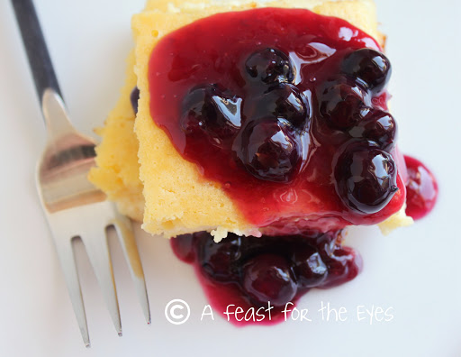 Cut into squares and serve with blueberry sauce.
