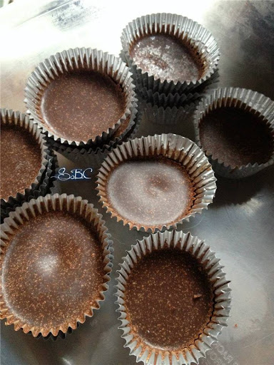 Add a pinch of crushed peanuts into each of the 24 molds.