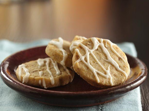 In large bowl, beat butter, granulated sugar, lemon peel and egg yolk with electric mixer on medium speed. Stir in 1 1/4 cups flour and five-spice powder until dough holds together. Stir in ginger and pecans.