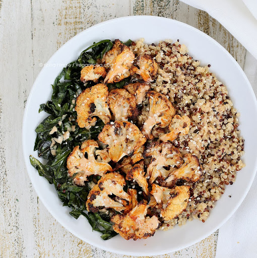 In a bowl, mix all the dressing ingredients. Toss the Cauliflower in it. sprinkle a bit of salt and bake at preheated 425 degrees F for 20-25 minutes.