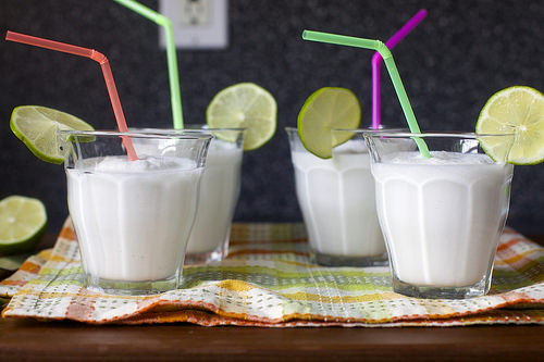 Blend every thing until it reaches your desired consistency — almost smooth, for a crunchier effect, or fully smooth, for a milkshake/creamier effect. Pour into glasses, garnish with lime and don’t forget to share.