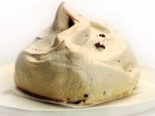 In a stand mixer fitted with the whisk attachment, beat the egg whites and salt until frothy, about 1 minute. With the machine on medium-high speed, gradually add the sugar, about 1 tablespoon at a time. Add the cream of tartar, vanilla extract, and espresso powder. Increase the speed to high and beat until the mixture is thick and holds stiff peaks, about 3 to 5 minutes. Using a spatula, fold in the chocolate chips. Drop 1/4 to 1/2 cup of the mixture onto the prepared baking sheet about 2 inches apart. Bake for 30 minutes. Rotate the pan and bake for another 30 minutes. Turn off the oven and allow the meringues to cool completely while still in the oven, about 2 hours.