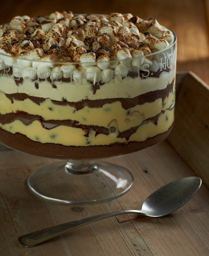 Layer the pudding mixture and the graham cracker pieces into a large trifle bowl, starting and finishing with the graham crackers. Layer the rest of the mini marshmallows on top and carefully burn or brown the marshmallows with a handheld blowtorch, as you would over a camp fire. Refrigerate until ready to serve.