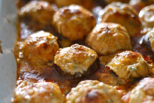 Remove stems from mushrooms and wipe caps with damp cloth to remove any dirt. Place into baking dish.