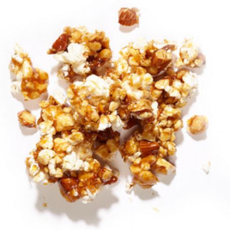 Using a wooden spoon, stir almonds, peanuts, and 7¾ cups hot popped corn into hot caramel until mostly but not completely coated. If too heavily coated, incorporate more popcorn. Work quickly, as caramel stiffens as it cools.