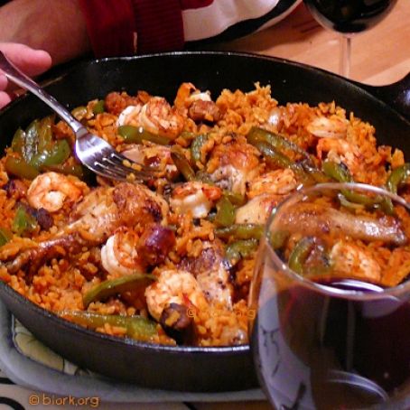 Slow Cooker Paella with chicken, andouille sausage, shrimp is so easy to put together and all you have to do it turn on the crock pot.