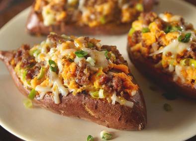 Preheat the broiler in your oven. Broil the stuffed potatoes on the middle rack of your oven until the cheese bubbles and starts to turn golden about 4 minutes.