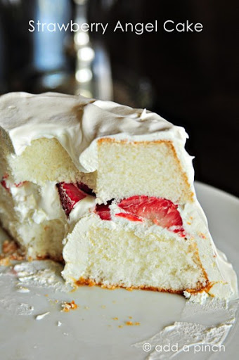 Top it with a pint of sliced strawberries and then place the top half of cake on top.