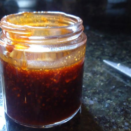 Slowly thin the orange marmalade with the orange juice until it reaches desired consistency. Then stir in the mustard and the dried chili flakes.