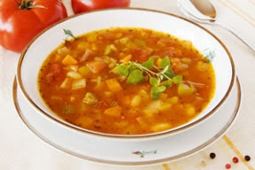 Puree the tomatoes, chick peas and garlic with the broth and chili powder in a blender (in batches, if necessary). Transfer mix to a medium large pot, bring to boil, lower the heat and simmer for about 10 minutes. (If using an immersion blender, you can process the ingredients directly in the cooking pot).