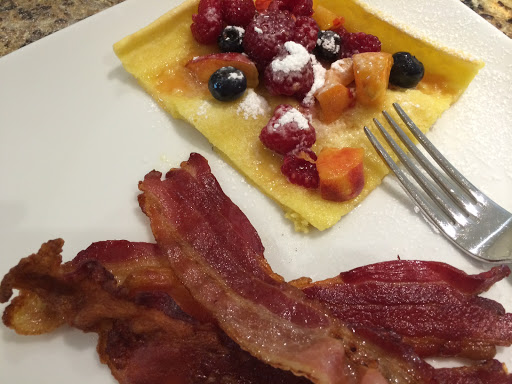 Melt butter in oven-proof pan. Mix remaining ingredients. Pour batter into pan. Let sit for 1 minute. Bake at 425 degrees for 12-14 minutes. Top with fresh fruit or jam.