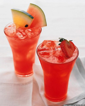 Set out two glasses, and spoon 3 tablespoons of the resulting strawberry puree, 4 tablespoons sugar, and 4 tablespoons lemon juice into each glass.