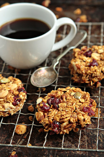 3. In a medium bowl, whisk together brown sugar, pumpkin puree, applesauce, honey, and vanilla until smooth. Pour over oats and stir until oats are moistened. Stir in cranberries, white chocolate chips, pecans and pumpkin seeds.