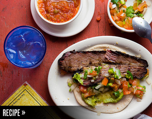 7. Make the pico de gallo: Combine the tomatoes, onions and jalapeños and season with salt. 8. Make the tacos: Place a spoonful of avocado on each tortilla, add some of the brisket, and top with a little pico de gallo.