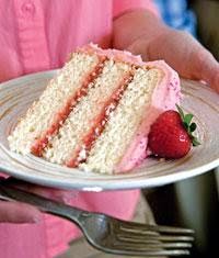 5.Spread Strawberry Curd evenly between cake layers. Spread Strawberry Frosting on sides and top of cake. Garnish with fresh strawberries, if desired.