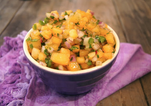This salsa is the perfect summer barbecue appetizer or an ideal poolside snack. And it happens to be one of my favorite salsa recipes of all time!The Sugar Kiss melon is the star here, and it makes for a salsa that is slightly sweeter than spicy. The flavors are not only fantastic with salted tortilla chips, but they also work perfectly on top of grilled chicken or fish. And it is wonderful over quesadillas, too!You could even add this to a big bowl of baby lettuces for a delightful melon salad!