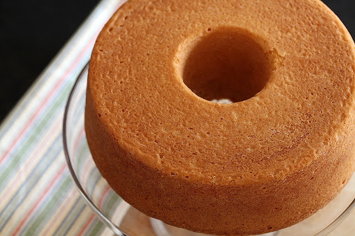 6- Spoon the batter into a lightly buttered 10-inch tube pan and place the pan on the center oven rack.