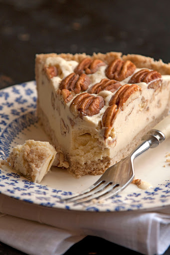 1. Make the crust: Combine pecans and sugar in food processor and process until finely ground. Add flour and process to combine. Add butter and pulse until pea-size crumbles form. Add egg yolk and ¼ cup ice-cold water and pulse just until combined. Transfer to counter and knead into a disk. Wrap in plastic wrap and refrigerate for 1 hour. Heat oven to 375°. On a floured work surface, roll dough until⅛" thick. Line a 9" pie plate with dough, and prick with the tines of a fork over the bottom; bake until golden brown, about 20 minutes, and then let cool completely.