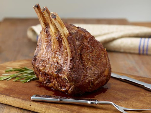 Preheat the oven to 375 degree F. Rub roast with House Seasoning; place roast on a rack in the pan with the rib side down and the fatty side up. Roast for 1 hour. Turn off oven. Leave roast in oven but do not open oven door for 3 hours. About 30 to 40 minutes before serving time, turn oven to 375 degrees F and reheat the roast. Important: Do not remove roast or re-open the oven door from time roast is put in until ready to serve.