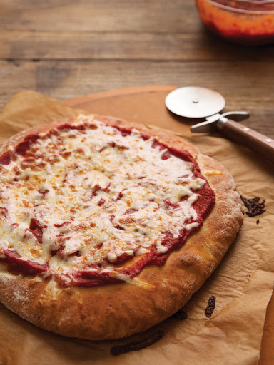 Place each crust, one at a time, each still on its parchment paper, on the hot pizza stone. Bake for about 5 minutes, or until the crust begins to puff and brown. Remove it from the oven. Top your pizza with your desired toppings, then place the pizzas again, one at a time, back on the pizza stone. Bake until the crust is browned and your toppings are cooked as desired (about 7 minutes, but time will vary depending upon toppings and taste). Allow the pizza to set for a few minutes before slicing and serving.