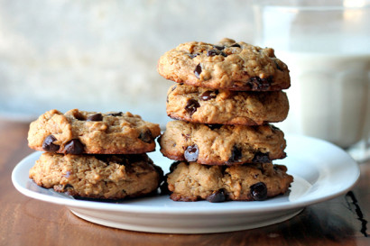 In a medium bowl, toss the oats, cinnamon, and baking soda together. Set aside. In a medium bowl, beat the egg. Mix in the peanut butter and brown sugar with a large rubber spatula until combined. Pour in the dry ingredients and slowly mix until everything is combined. Depending how thick and/or cold your peanut butter is, you'll have to use some arm muscles. Fold in the chocolate chips.