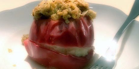4. Place the apples on a 33 x 23-cm (13 x 9-inch) baking dish. Divide the oat mixture among the apples, spooning it into the hollows and mounding it on the tops. Cover the dish with aluminum foil. Bake 30 minutes. Remove the foil and continue baking until the oat mixture is lightly browned, 5 to 10 minutes.