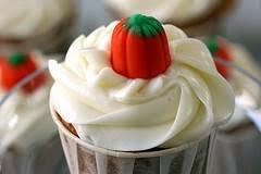 This is a relatively simple recipe, easy to do, but yummy none the less. Very much like a carrot cake, the pumpkin flavor is subtle and the spices stand out. The cupcakes are not very sweet so the addition of the white chocolate is nice while not being overbearing. I topped them off with a standard cream cheese frosting from a recipe that can be found elsewhere on the blog.