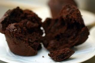 Whisk together flour, cocoa, brown sugar, baking powder, baking soda, and salt in a medium bowl until combined well. Add chocolate mixture and stir until just combined. Stir in remaining chocolate and cherries.