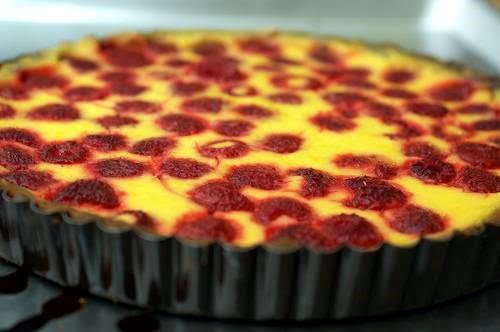 4. Scatter the berries over the bottom of the crust and pour over the filling. Bake for 35 to 40 minutes, or until the filling is set in the center. Transfer the tart to a rack and cool to room temperature.