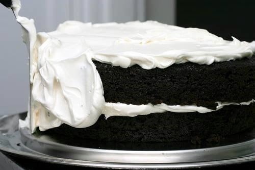 Make Your Own Chocolate Layer Cake with Marshmallow Frosting and Filling, as you’ve seen in these pictures: Double the frosting recipe and use it as filling and coating on a two-layer round chocolate cake. Set about one cup aside if you wish to tint it and pipe decorations on the cake, either it with a piping bag or a makeshift one, a sandwich bag with the corner snipped off.