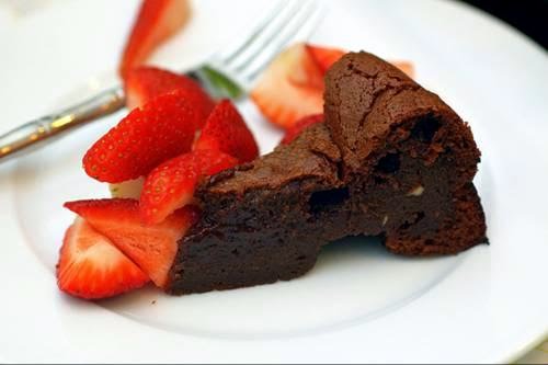 Basically, when you cut into the cake (and I suppose you have to make it once to get the gist right) you should have a slightly gooey, fudgy center, not fully cake-like. That is how you know it's perfect.