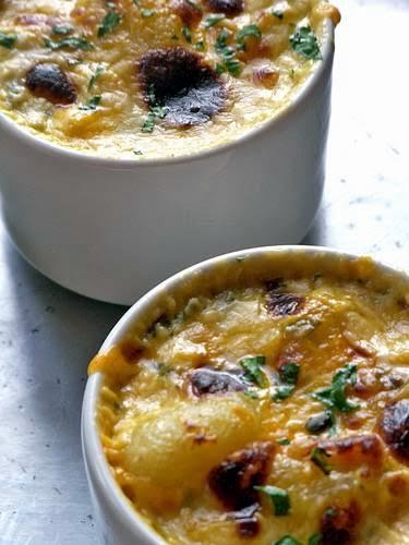 While a recipe follows, there's no real rule to this - you're basically simmering some dairy and aromatics, then rendering some pork and adding it all to a pot of little potato dumplings. Just add what feels right, and swap what you don't like for something that you do - chives instead of basil and thyme would be great, I think, and Gouda cheese - how did Gouda avoid this party? Do yourself a favor, and stick to the rule of ramekins - it is the perfect portion size for something this tenderly rich and melting, and keeps you from getting feral. Eat with a friend. And we'll get seasonal in a bit.