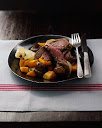 3. Roast, turning and stirring vegetables once, until steak is lightly browned and an instant-read thermometer inserted in one side of steak registers 130 degrees to 135 degrees for medium-rare, 15 to 20 minutes.