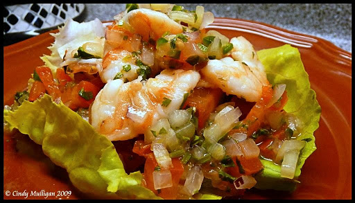 This shrimp ceviche recipe is a winner. I found the recipe online and have adjusted it slightly. I love ceviche - especially in the warm summer months, but the ceviche I have had in the past usually uses white fish and scallops; and I'm not particularly fond of scallops. When I saw this idea for Shrimp Ceviche - I pounced on it. We brought it to some friends home and had it as an appetizer to dinner. Enjoyed it whole heartedly with tortilla chips. You're going to love this one!