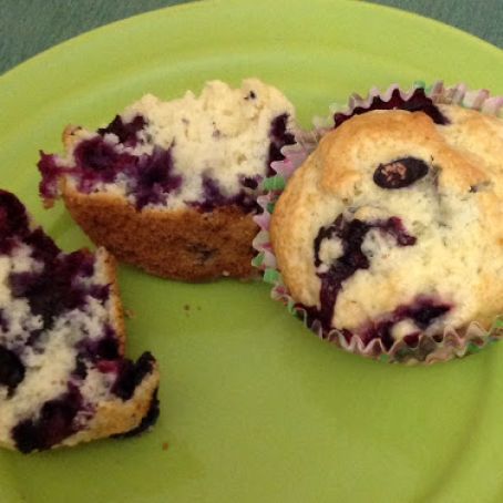 Stirring a little as possible, blend all ingredients. Add the blueberries and fold into mix.