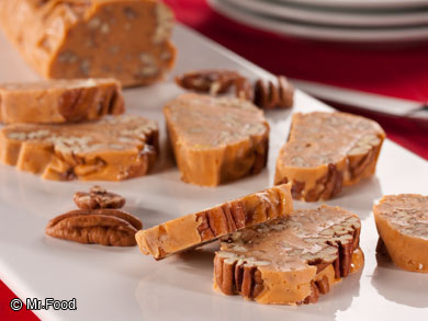 Unwrap and mark the surface lengthwise with the tines of a fork, and brush with the egg white. Press the pecan halves into the roll to completely cover the surface, and rewrap in wax paper.