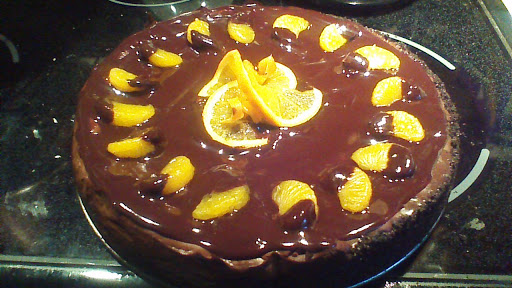 5. Melt chocolate & butter in bowl over hot water. Add orange liqueur & stir until smooth. Pour over top of cooled cheesecake & spread to edges. Garnish as desired. Refrigerate for at least 4 hours before serving.